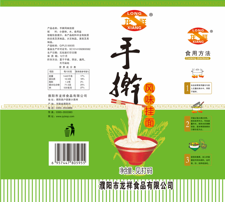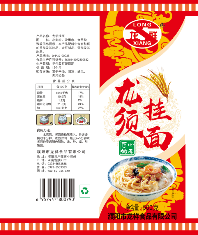 濮陽市龍祥食品有限公司位于河南省濮陽縣戶部寨鎮(zhèn)小濮州,始建于1994年,前期投資200萬元,經(jīng)過幾年的努力,大力開發(fā)市場,由于市場的需求量急劇上升,出現(xiàn)供不應(yīng)求,于2004年擴(kuò)建,建成一座新型的現(xiàn)代化面粉加工企業(yè),并擁有全國先進(jìn)全自動(dòng)生產(chǎn)設(shè)備一套,產(chǎn)量由以前的100噸/天,提高到現(xiàn)在400噸/天。 2012年再次擴(kuò)大規(guī)模申請(qǐng)為濮陽市龍祥食品有限公司,注冊資金500萬元。2012年又投資800萬元新建掛面生產(chǎn)線一條,日產(chǎn)掛面50噸。龍祥食品有限公司現(xiàn)有職工120余人,總工程師1人,專業(yè)技術(shù)人員10人,經(jīng)濟(jì)師1人,會(huì)計(jì)師1人,銷售人員2人,優(yōu)秀專業(yè)人員20余人。  龍祥公司自創(chuàng)建以來,社會(huì)效益十分可觀。公司一直以“今天的質(zhì)量,明天的市場”為信念,“一切為了客戶需求,竭誠追求完美品質(zhì)”為企業(yè)宗旨,走專業(yè)化經(jīng)營和職業(yè)化管理的路子。
